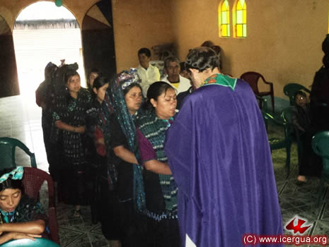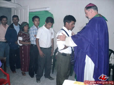 El viernes 1 de abril, Monseñor Eduardo comenzó su periplo misionero, visitando la comunidad de Chuitzanchaj, para la celebración mensual de la Eucaristía. Como siempre, la comunidad estaba esperando ansiosamente la llegada del obispo. Al igual que muchas otras comunidades, esta comunidad tiene la práctica que, cuando un hermano decae en su pereverancia y participación, antes de reincorporarse plenamente a la vida de la comunidad, debe pasar un período de oración y penitencia. Con ocasión de la visita, un joven, de nombre Miguel, que había terminado el período de preparación para reincorporarse a la comunidad hizo su "reconciliación", por lo que ahora podrá nuevamente participar en la vida y ministerios de la comunidad. |