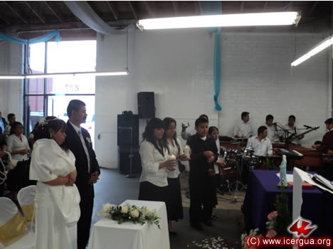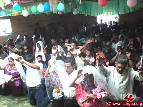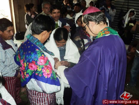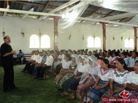 El sábado 2 por la tarde, el obispo realizó su primera visita a la Comunidad de Siete Cerros, ubicada en el municipio de San Pedro Necta. Esta comunidad ha hecho alianza hace apenas un par de meses y, en el poco tiempo ha logrado levantar las paredes y el techo de su nueva Casa de Oración e, ingualmente, se ha esforzado en ir creciendo espiritualmente. Con ocasión de la visita del obispo, 9 hermanos fueron iniciados en la vida cristiana y 6 parejas contrajeron matrimonio sacramental. |