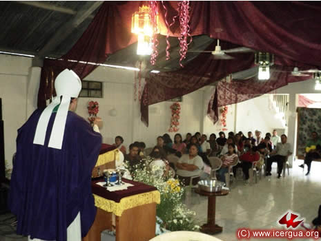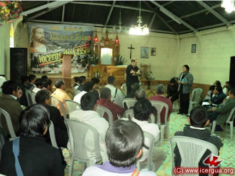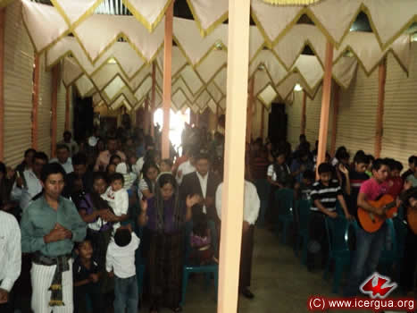 Por la tarde del día 18, el obispo presidió la eucristía en la Comunidad de Cecilia, Cunén. Los hermanos han logrado construir un templo espacioso, capaz de acoger a unos 500 hermanos. El mismo está aún en fase de construcción, sin embargo, han logrado construir lo indispensable para que pueda ser utilizado ya como lugar de reunión y de oración de la comunidad. |