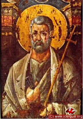 Arriba: icono del Apóstol Pedro: obispo de Antioquía desde el año 37 al 67. A la izquierda: diácono San Efrén, uno de los padres más venerados por la Ortodoxia Oriental.
