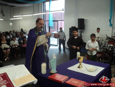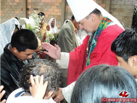 El domingo de Pascua, nuestro obispo inició sus visitas pastorales en la Parroquia Católica Renovada de Santa Eulalia. Por primera vez celebró en el área que recientemente han comprado los hermanos, para poder levantar un nuevo templo parroquial. Para mientras esto sucede, los hermanos han construido una enorme casa de oración de 600 metros cuadrados. La comunidad parroquial está creciendo fuertemente y el párroco, padre Fredi Mux, se siente contento y agradecido con el Señor por las múltiples bendiciones que se están experimentando. |