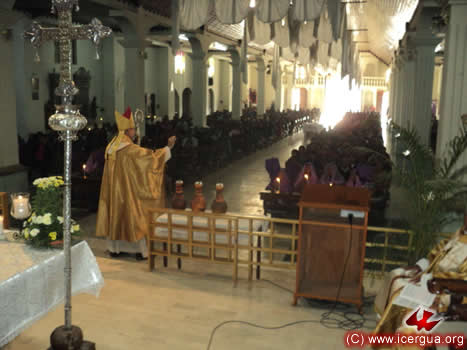 Al llegar al templo, el obispo presenta al pueblo de Dios el cirio pascual, como se puede observar en la foto de la izquierda. |