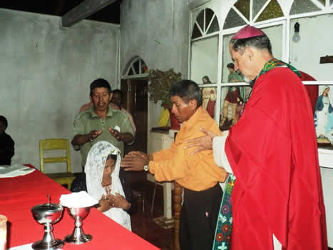 Por la tarde el día 19, el obispo, acompado por el Padre Santos, encargado pastoral de esta áre, celebró la Eucaristía con los hermanos de la comunidad de Petatán, Concepción Huista. |