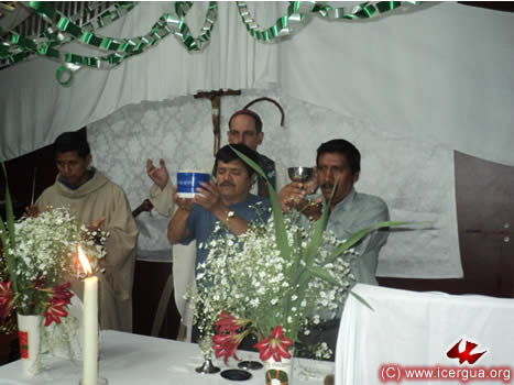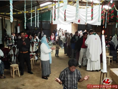 El 19 por la noche, Monseñor Eduardo presidió la celebración eucarística con la comunidad del Centro de Jacaltenango. Por la gracia de Dios, esta comunidad ha crecido notablemente. Hace apenas unos tres años, la comunidad se encontraba reducida a pocos hermanos. Ahora hay varios centenares de hermanos que asiduamente participan en la vida de la comunidad. Al igual que hicieron las comunidades de Concepción Huista, actualmente las comunidades de Jacaltenango están en proceso de organización, para solicitar también ser erigidas como Parroquia Católica Renovada. |