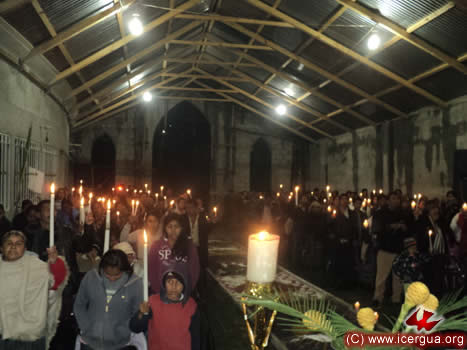 Por la tarde del sábado santo, el obispo inció la celebración pascual, con la Vigilia en Jolomcú, de San Rafael la Independencia. Los hermanos participaron activamente y se comprometieron a vivir la experiencia pascual, especialmente participando activamente en la misión de la Iglesia. |
