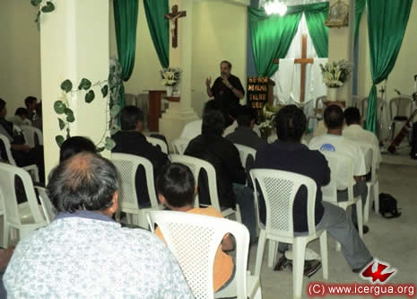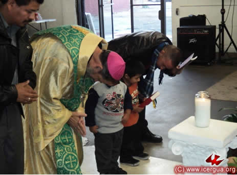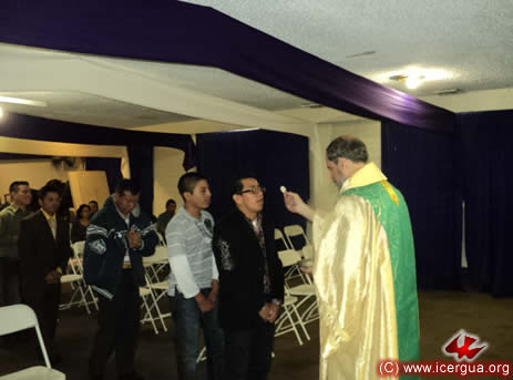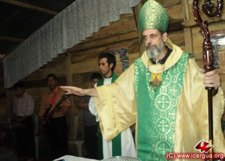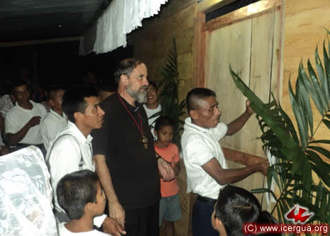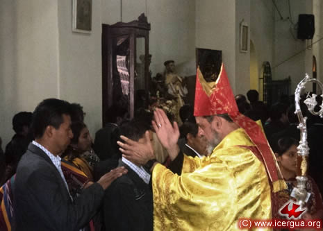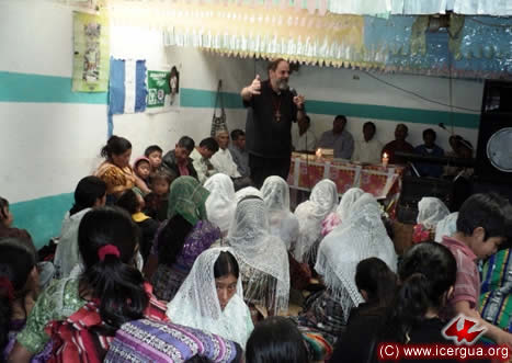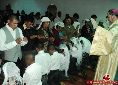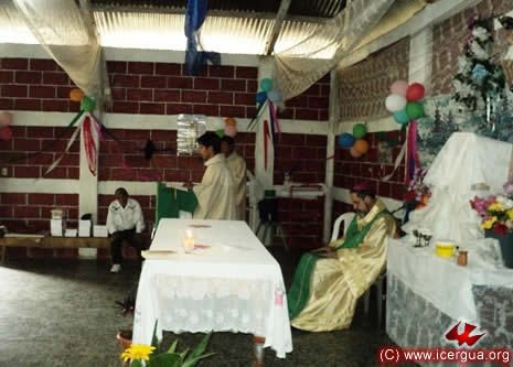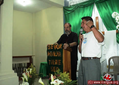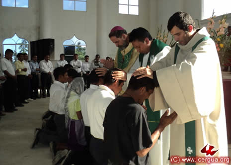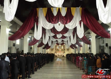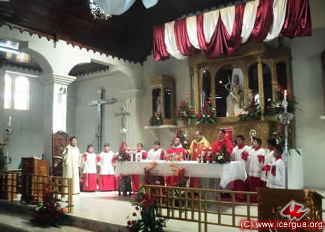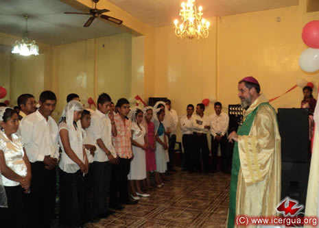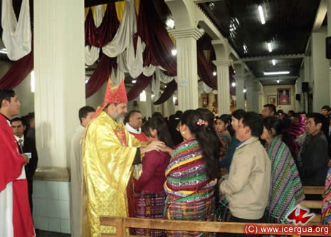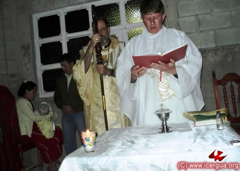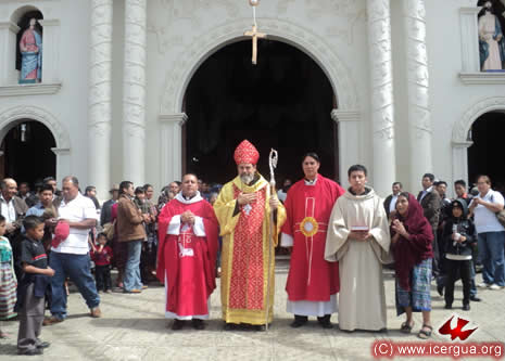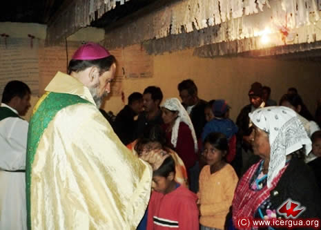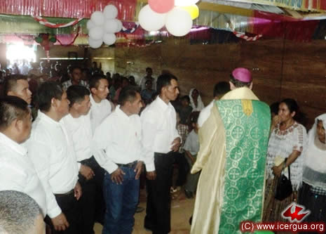 Junto al obispo estaban el Padre Rigoberto Upún, Vicario General de Icergua y co-párroco junto al Padre Francisco Simón de la Catedral. Dado que el Padre Francisco estaba de viaje, los sustituía el recién ordenado Padre Orlando López. |