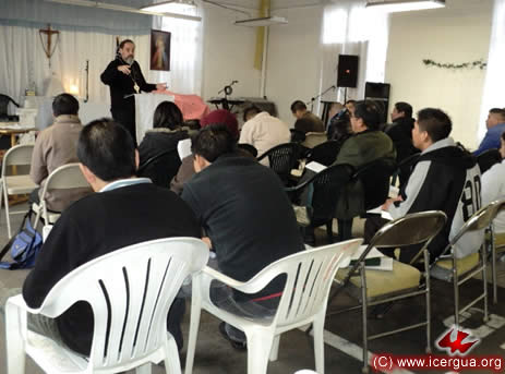 El segundo de izquierda a derecha en la foto, es el hermano Nicolás. Él es el líder de la comunidad y también el predicador de la misma. |
