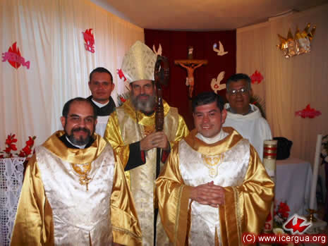 El lunes 4 por la mañana, el obispo tuvo un breve encuentro con algunos de los misionero que trabajan en México. Bajo la coordinación del Padre Nicolás Gómez, quien actúa como Vicario General de ICREM (Iglesia católica renovada ecuménica en México), trabajan los Padres Mario Lópet, Dionisio Montiel, Roberto García e Israel Lobato. |