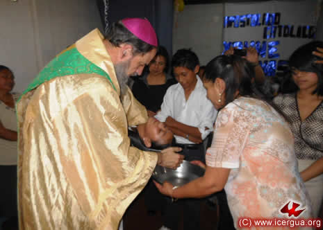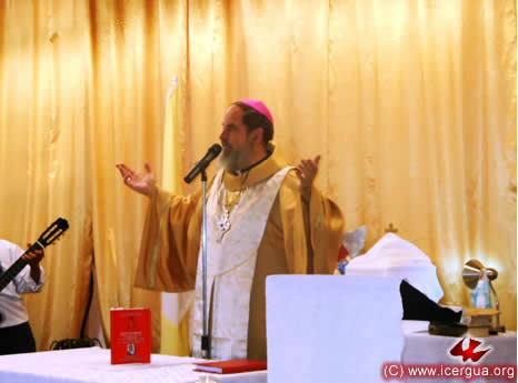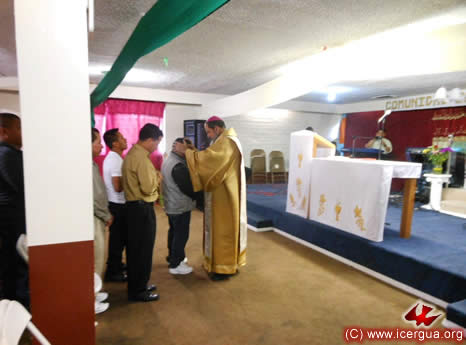 El sábado 9 por la noche, el obispo llegó a la Comunidad Restauración en el Espiritu Santo, para presidir la Eucaristía. |