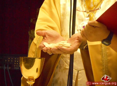 Hacia el final de la Eucaristía, muchos de los hermanos acudieron a recibila Sagrada Comunión. |