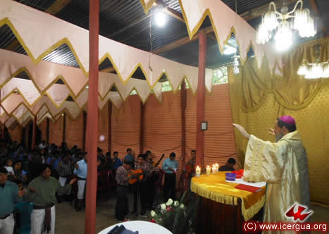 El 24 por la tarde, el obispo presidió la celebración Eucarística con los hermanos de la comunidad de San José Poaquil. |