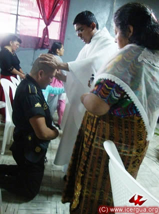 El 18, el padre Denis Obando, párroco de Uspantán, actuando como Delegado del Obispo, llegó hasta la capilla de la Policía Nacional Civil de Quetzaltenango, para formalizar la creación de la Capellanía. |
