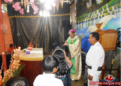 Hacia el medio día del día primero, el obispo celebró la Eucaristía con la comunidad de Pajomel, Santa Cruz la Laguna. |