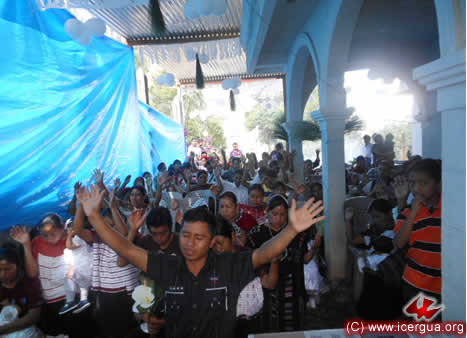 La celebración inició con una procesión desde la entrada de la comunidad, hasta el templo, distante unos 1500 metros. En la misma fue llevado el Santísimo Sacramento y los hermanos fueron alternando alabanzas y oraciones. |