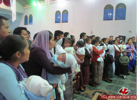 La comunidad de Chuitzanchaj se ha caracterizado porque ya desde hace varios meses ha reconocido el derecho que tienen todos los niños bautizados de participar en la comunión. Los niños han sido preparados por sus padres y se acercan a recibir el divino sacramento con devoción, como puede verse en la foto de la derecha. |