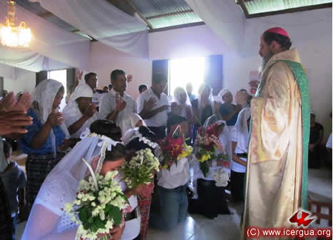 Pablo y Catalina que formaban una familia desde hacía largo tiempo, pero que nunca habían contraido matrimonio sacramental, recibieron también la gracia del sacramento, para poder trabajar con mayor integridad dentro de la comunidad. |