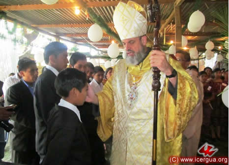 El domingo 25 por la mañana, el obispo llegó hasta la comunidad de los Guates, San Juan Sacatepéquez, Guatemala, para presidir la Eucaristía. |