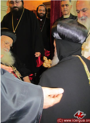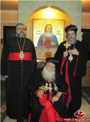 En la foto de la izquierda, junto a Su Santidad y a Mor Santiago Eduardo, se encuentral Mor Clemis Daniel, Arzobispo de Beirut, Líbano.