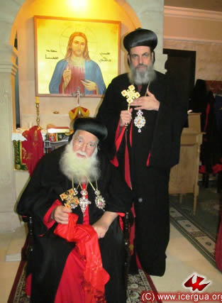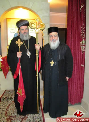 A la derecha: Mor Clemis Eugenio y Mor Santiago Eduardo, en la Catedral de Santiago de Serug.