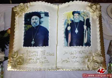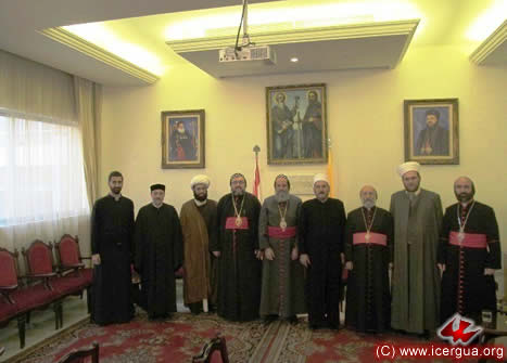 En la foto de la izquierda: El párroco de la Catedral, el representante de la Iglesia Católica Romana, el representante de los Muslmanes Shiítas, Mor Clemis Daniel, Mor Santiago Eduardo, el representante de los Musulmanes Drusos, Mor Clemis Eugenio, el representante de los Musulmanes Sunnis y Mor Crisóstomo Miguel.