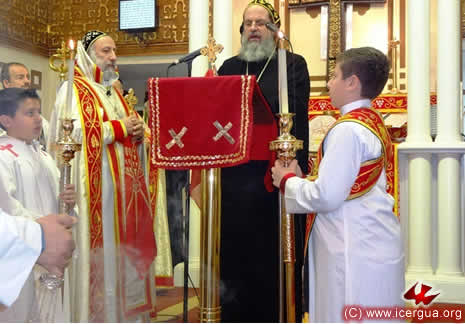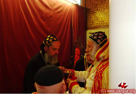El primer paso establecido, fue el dar la tonsura monacal a nuestro obispo. Como es tradición, Su Santidad otorgó al obispo un nombre espiritual y eclesial: Yaqub, (Jacob), que en castellano se traduce como Santiago.