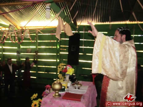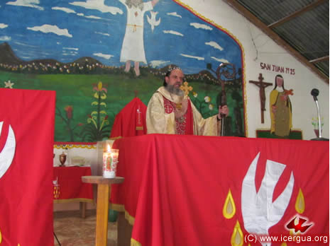 Al final de la celebración, el grupo de jóvenes y el grupo de señoras encargadas de la oración, entregaron sendos recuerdos al Arzobispo como muestra de aprecio y felicitación por la creación de la Arquidiócesis de Centro América. Concelebró la Eucaristía el Padre Orlando, párroco local. |