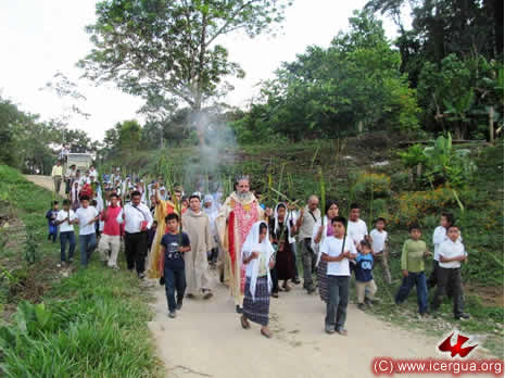 Los hermanos le fueron a recibir la entrada de la comunidad, desde donde se emprendió una caminata con ramos, recordando la entra de Jesús en Jerusalén.