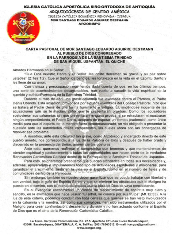 | 05: CARTA PASTORAL DEL ARZOBISPO A LA PARROQUIA DE LA SANTÍSIMA TRINIDAD DE USPANTÁN. |