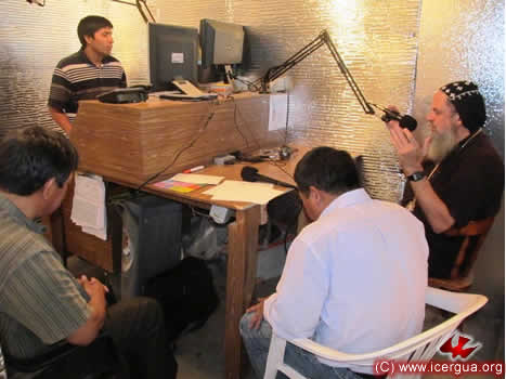 El sábado ocho por la tarde, como es habitual cuando el Arzobispo visita Los Ángeles, llegó hasta la cabina tres de Radio Nueva Vida de Nucá, para transmitir el programa radial "Creciendo en la Fe". |