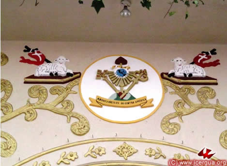 Le impresionó al Arzobispo que sobre la puerta de ingreso principal de la Catedral, se ha elaborado en forma sólida y estable, con gran precisión y arte, el Escudo de nuestra Arquiócesis de Centro América.