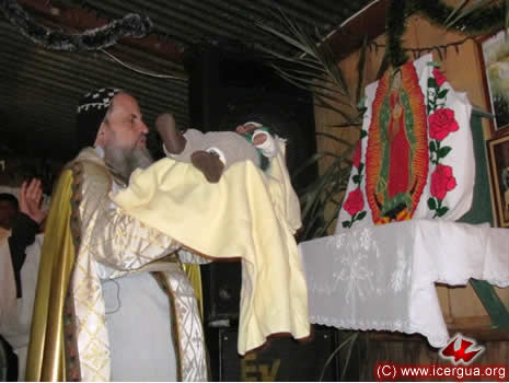 Al final de la misa, se hizo la presentación del recién nacido hijo del líder y ministro de comunión de la comunidad, el hermano Sixto quien, en honor al arzobispo puso a hu hijo el nombre de Santiago Eduardo. |