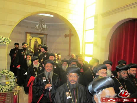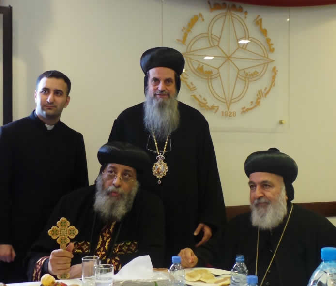 | 26: EL PAPA COPTO TEODORO II SE ENCUENTRA CON EL SÍNODO SIRO-ORTODOXO AL PRESENTAR EL PÉSAME. |