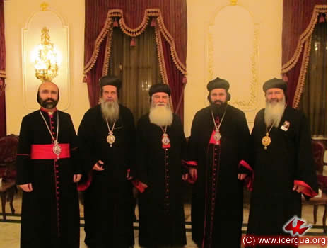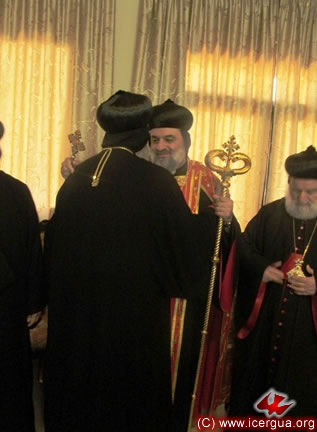 El viernes 28 por la noche, de regreso en Damasco, nuestro Arzobispo se encontró por algunos momentos con Su Beatitud Ignacio José III, Patriarca sirio-católico. Perteneciente a la Iglesia Católica Romana, Su Beatitud, al igual que los demás Patriarcas católicos romanos de la región, mantienen una relación estrecha y de gran amistad con nuestra Santa Iglesia. Su Beatitud participó en todas las ceremonias celebradas primero en Beirut y luego en Damasco. |