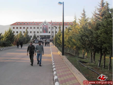 El edificio del fondo fue construido por Su Santidad Ignacio Zaqueo, para sede del Santo Sínodo y para que en él se puedan celebrar todas sus reuniones. Debido a la situación imperante en Siria y a que algunos obispos no estaban decididos a ingresar a Siria, el Sínodo de elección del nuevo Patriarca, en lugar de celebrarse en ese edificio, será celebrado en el Monte Líbano. |