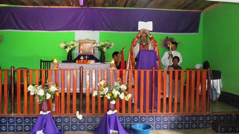 Al medio día del primero de marzo, Mor Santiago Eduardo, visitó por segunda vez el nuevo templo que está construyendo la comunidad de La Vega de Chicol, del Municipio de Santa Bárbara.