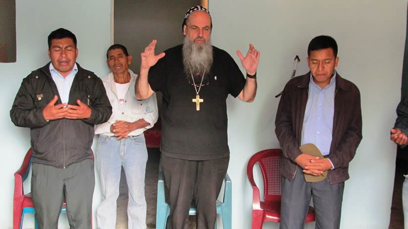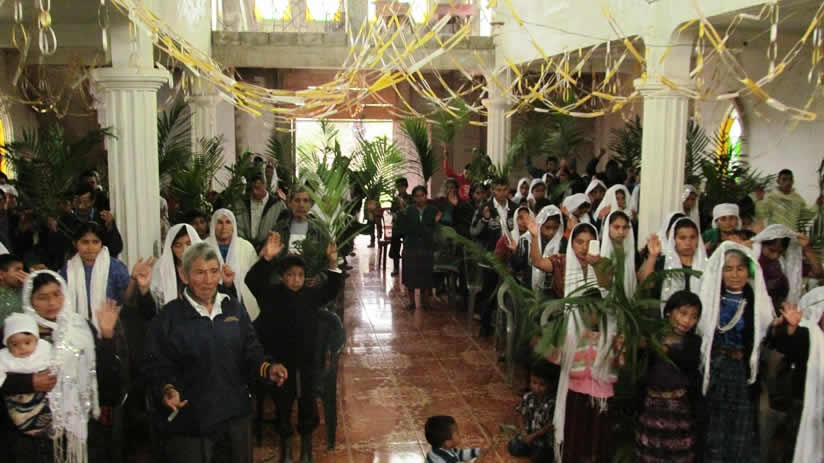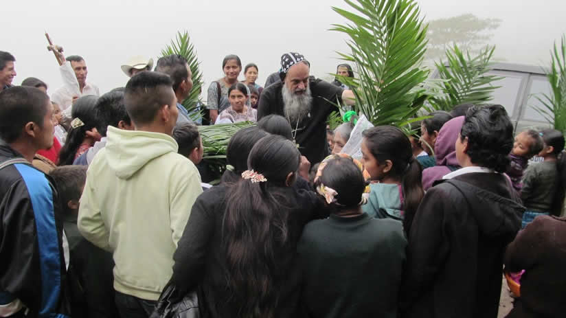 El domingo de Ramos, la actividad misionera de Mor Santiago Eduardo comenzó visitando la comunidad Nueva Jerusalén, del Centro urbano de San Mateo Ixtatán.
