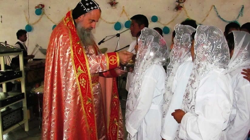 El lunes 30 por la noche, Mor Santiago Eduardo llegó hasta la nueva comunidad Nuevo Edén, en donde una multitud de hermanos les esperaba para bendecir el nuevo templo y administrar los sacramentos de la Iniciación Cristiana a numeros hermanos.