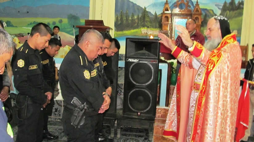 Participaron en la celebración también los agentes de la Policía Nacional Civil destacados en San Mateo Ixtatán, así como algunos policías de tránsito y otras autoridades locales. Invitados por uno de los hermanos a participar, se les invitó a acercarse y se oró por ellos, implorando al Señor que les dé discernimiento, rectitud y que les libre de todo peligro y de todo mal.