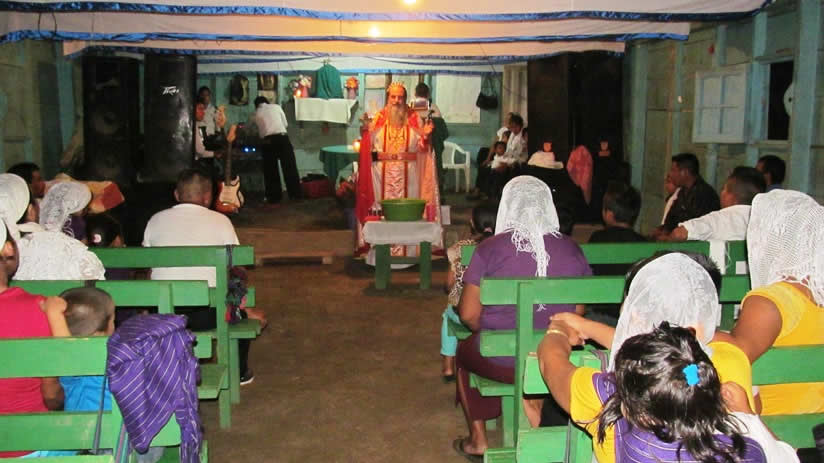 Al caer del día 6, Mor Santiago Eduardo presidió la celebración de la misa con hermanos de la comunidad de Tezulutlán, Sayajché, Petén.