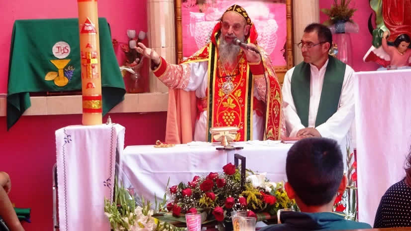 El domingo 30 de agosto por la mañana, Mor Santiago Eduardo presidió la celebración de la santa misa en la sede temporal de la Parroquia de la Natividad y Nuestra Señora de Los Lagos de Coyotepec, Estado de México.
