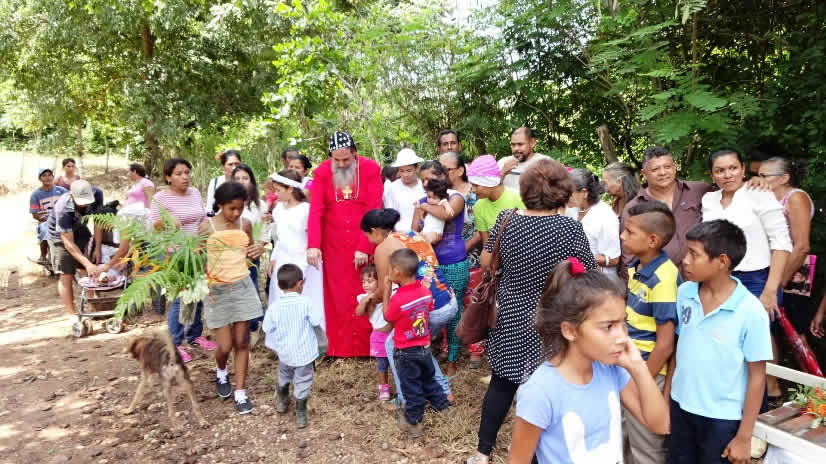 Un buen grupo de files le esperaba a la entrada de la comunidad, para hacer una caminata hasta el templo de la Purísima Concepción, que recientemente se ha incorporado como misión de la Santa Iglesia Siro-Ortodoxa de Antioquía, Arquidiócesis de Centro América.