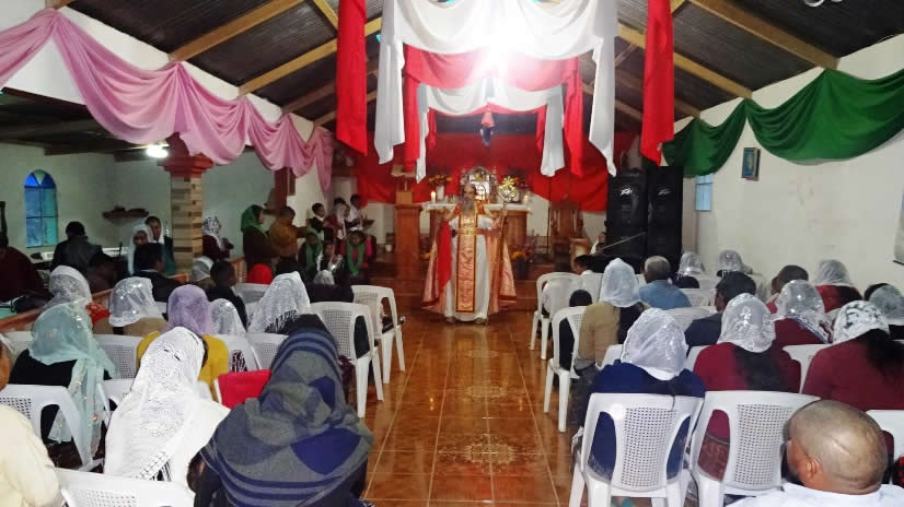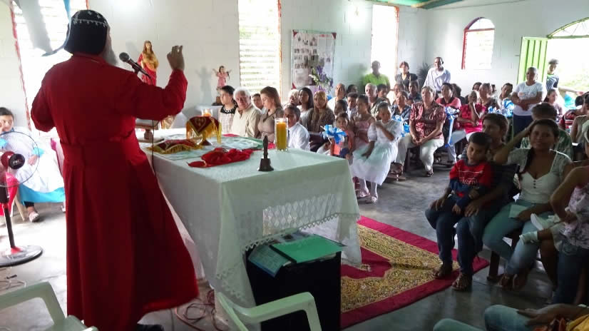 El tres por la tarde, después de terminar el programa de formación, Mor Santiago Eduardo presidió la celebración de la Santa Misa en la Iglesia de la Purísima Concepción de El Hijito, Estado Portuguesa.