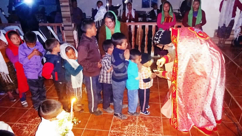 Al caer del día 30, Mor Santiago Eduardo llegó hasta la comunidad de Ixtenam, de la Parroquia de Santa Eulalia, Huehuetenango, para presidir la celebración de la Santa Misa y administrar la comunión solemne a un buen grupo de niños.