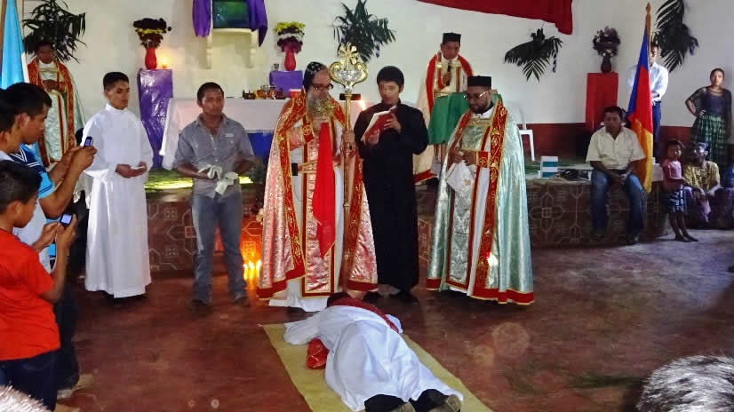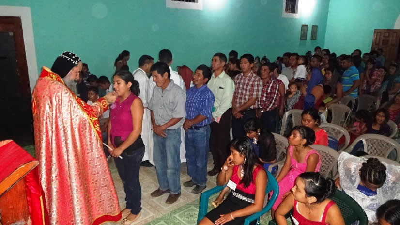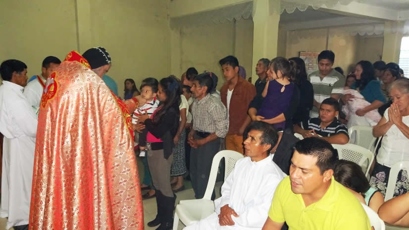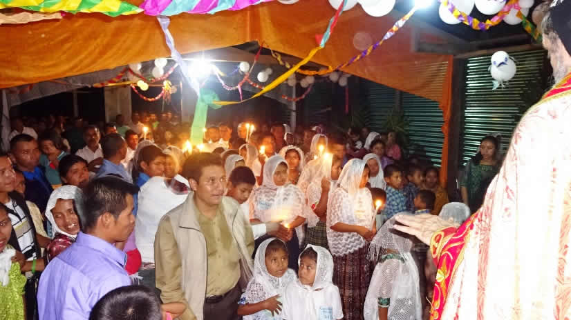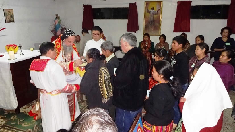 El primero por la noche, con numerosa participación de hermanos, se celebró la Divina Liturgia en la sede parroquial de la parroquia de la Renovación Carismática de Antioquía, en Guaxacaná, Nentón.
