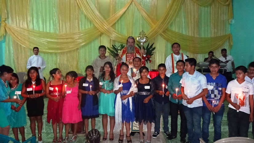 Dentro del marco de la celebración se administró la confirmación y el envío misionero a quince hermanos. Trece eran de Tzisbaj y dos de Buxup.