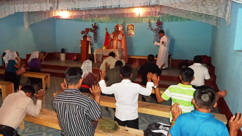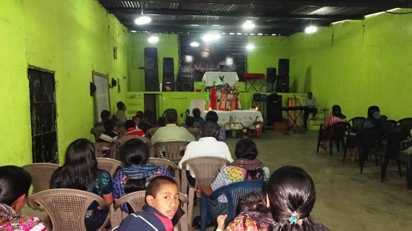 El lunes dos de Noviembre por la noche, Mor Santiago Eduardo llegó hasta la comunidad de Tzisbaj, en la parroquia de Jacaltenango, para presidir la celebración de la Santa Misa. Le acompañó el párroco, Padre Santos Acosta Sol, el padre José Alfredo Hernández, párroco de Nentón y tres seminaristas.