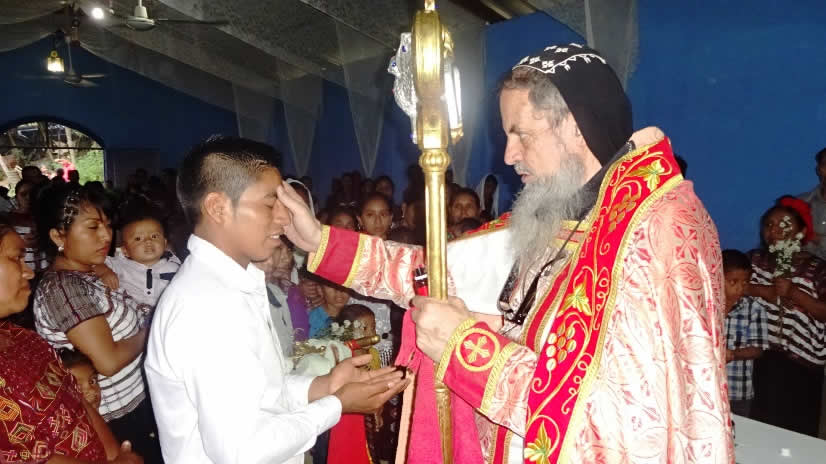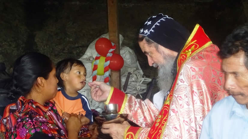 El domingo 22 por la mañana, el Arzobispo llegó hasta la comunidad de Los Guates, San Juan Sacatepéquez, para presidir la celebración de la Divina Liturgia.