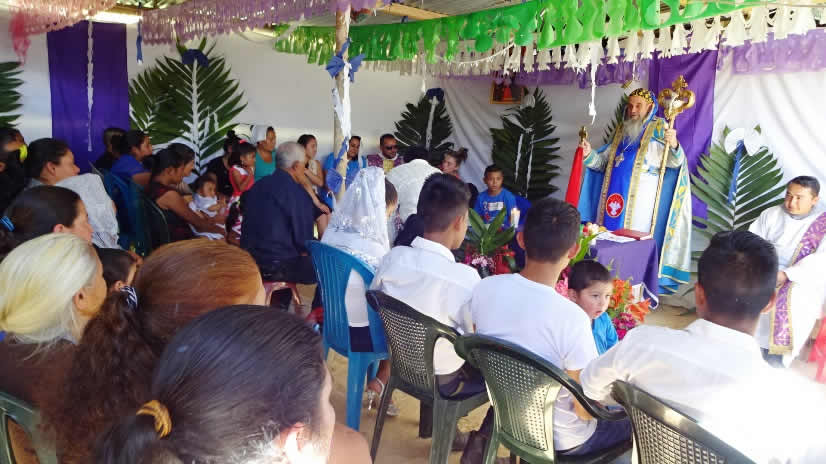 Además informaron a Mor Santiago Eduardo de cómo están organizando y juntando materiales para poder iniciar en un futuro próximo la construcción de un templo formal, que esté ubicado a la altura de la carretera que para delante del predio de la Iglesia.