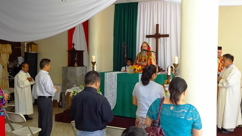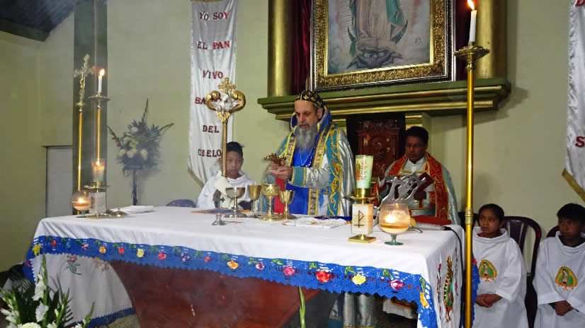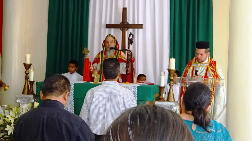 Antes del medio día el Arzobispo presidió la celebración de la Divina Liturgia, con los miembros de las comunidades de Guaymango, que pudieron asistir. Muchos estaban aún trabajando y no pudieron llegar.