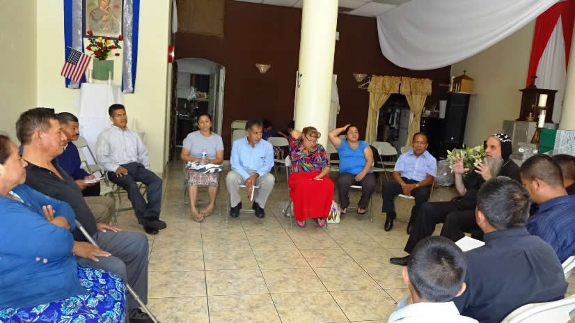 La visita inición con una Asamblea de formación y diálogo con delegados y servidores de las comunidades que tienen como centro la población de Guaymango, del departamento de Ahuachapán.